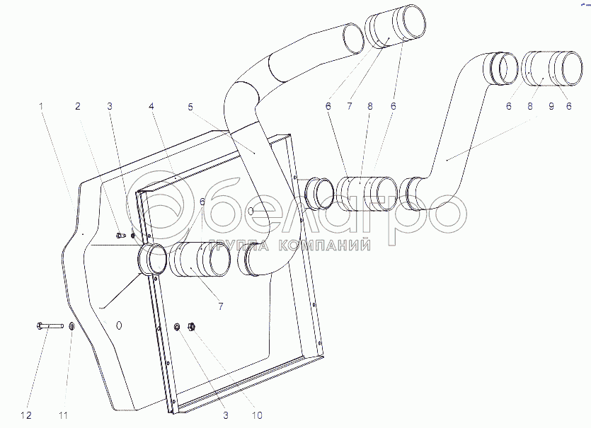 Каталог запасных частей к технике: МЗКТ-65151 "Волат". Установка охладителя наддува