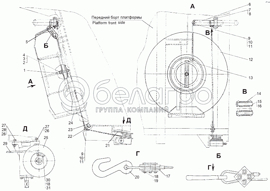 Каталог запасных частей к технике: МЗКТ-65151 "Волат". Установка подъемника запасного колеса