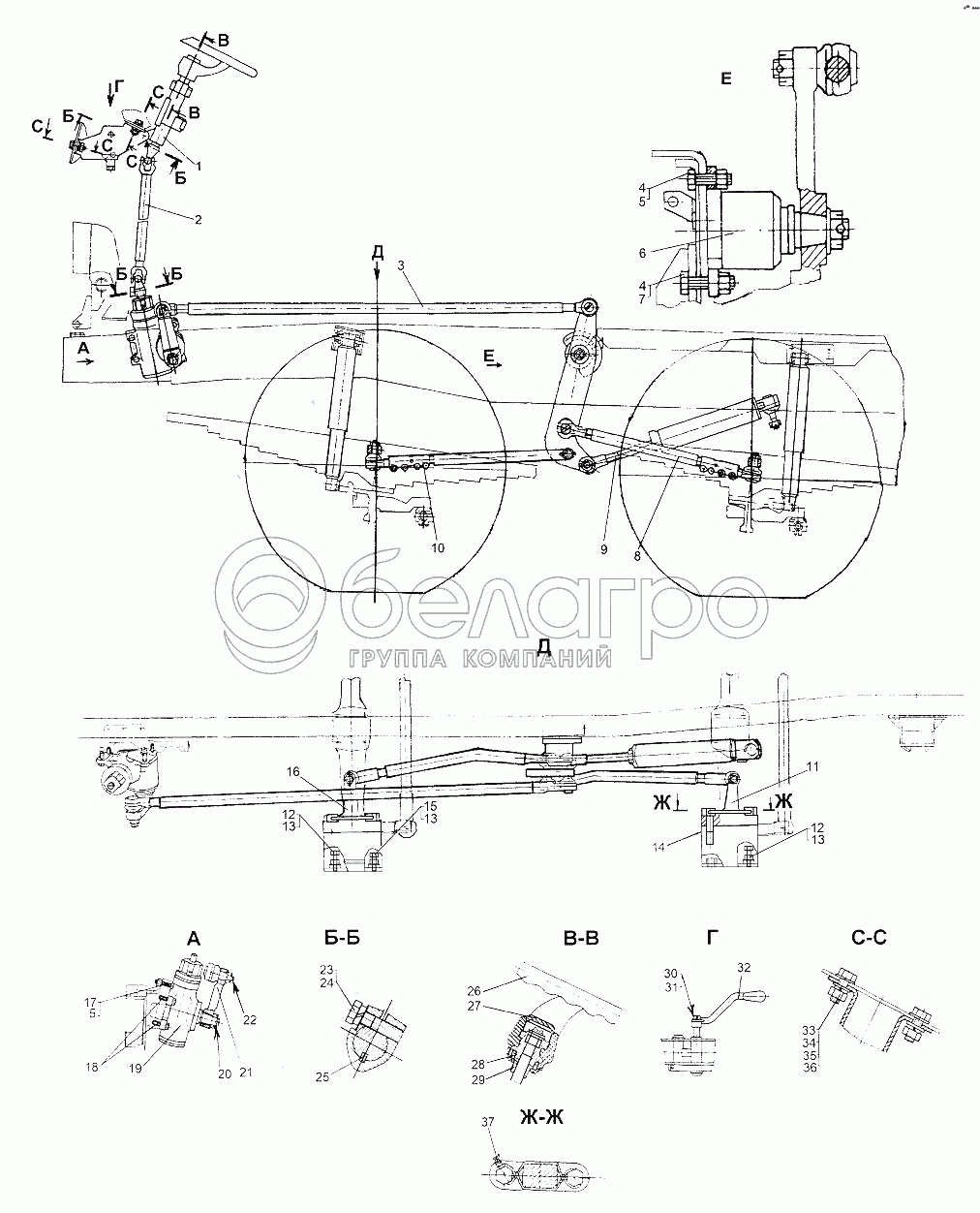 Каталог запасных частей к технике: МЗКТ-65151 "Волат". Установка рулевого управления