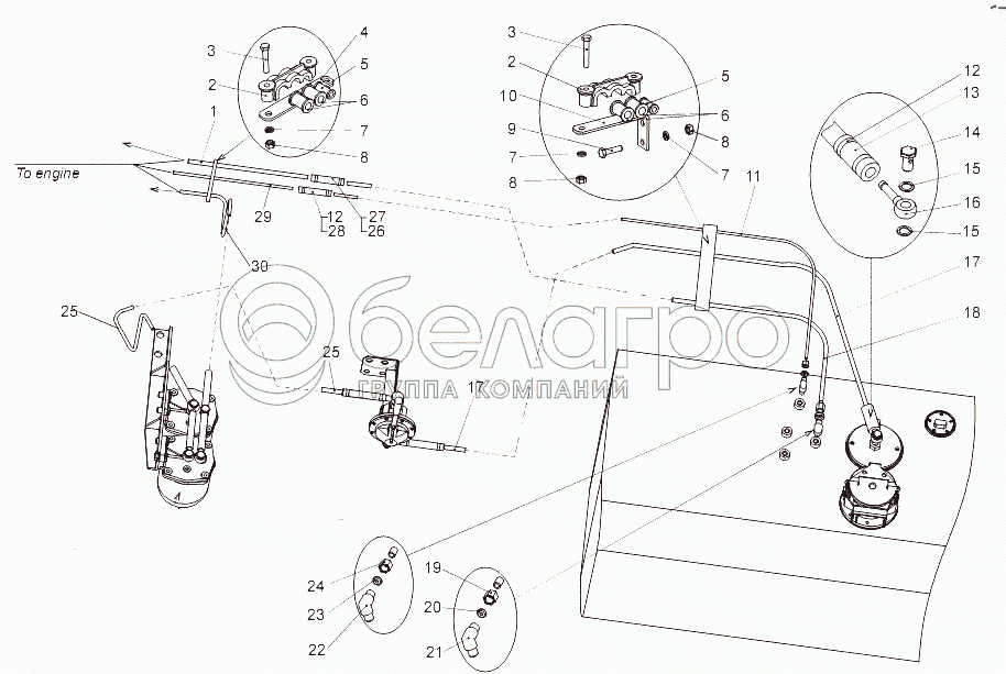 Каталог запасных частей к технике: МЗКТ-65151 "Волат". Установка топливопроводов