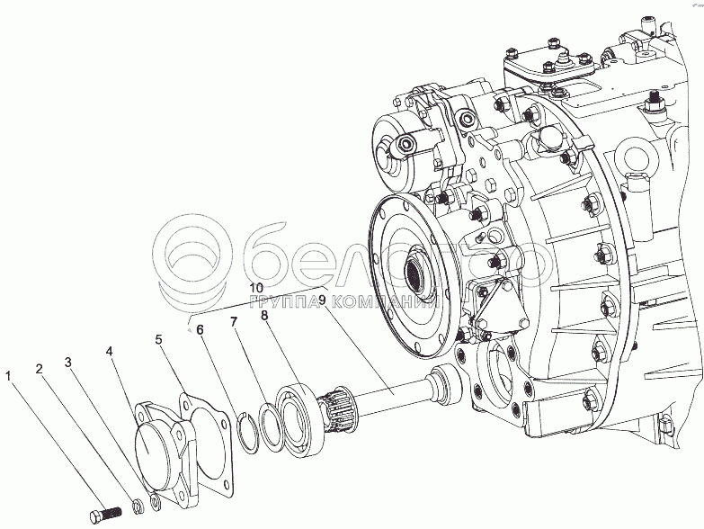 Каталог запасных частей к технике: МЗКТ-65151 "Волат". Установка вала отбора мощности