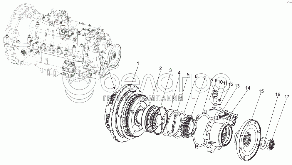 Каталог запасных частей к технике: МЗКТ-65151 "Волат". Установка выходного вала