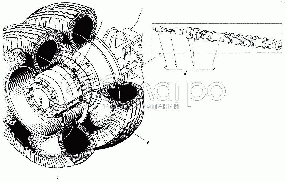 Каталог запасных частей к технике: МЗКТ-65151 "Волат". Установка задних колес