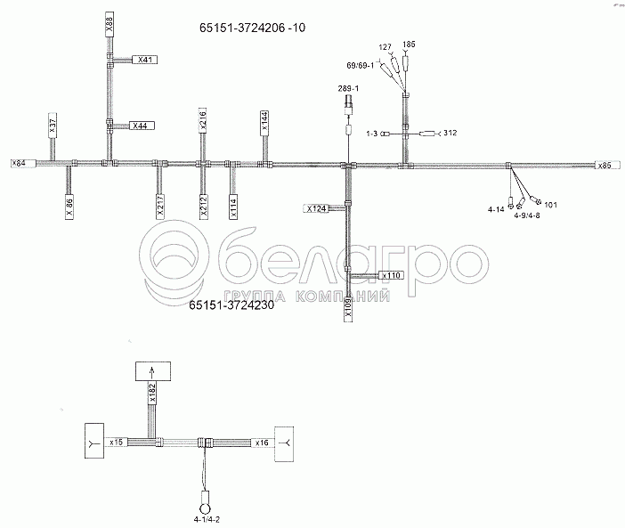 Каталог запасных частей к технике: МЗКТ-65151 "Волат". Жгут проводов в кабине