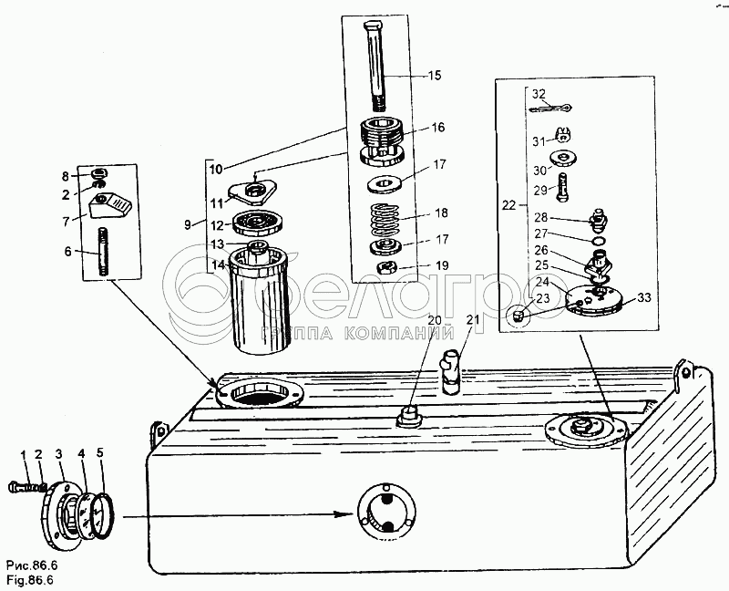 Каталог запасных частей к технике: МЗКТ-65158. Бак 6515-8608010