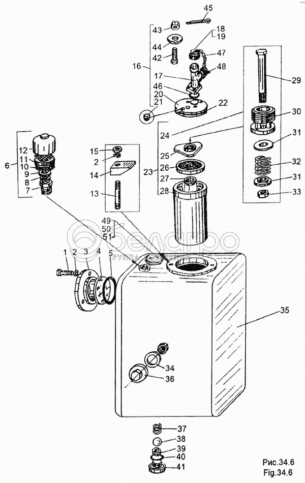 Каталог запасных частей к технике: МЗКТ-65158. Бак масляный 6923-3410010-10