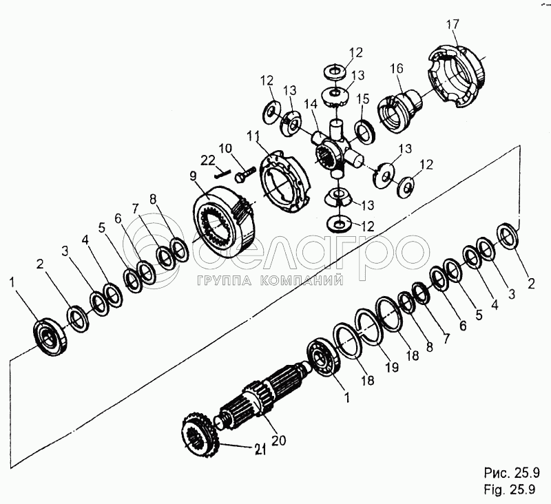 Каталог запасных частей к технике: МЗКТ-65158. Дифференциал межосевой