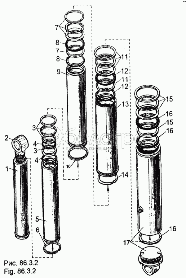 Каталог запасных частей к технике: МЗКТ-65158. Гидроцилиндр 6515-8603010-03