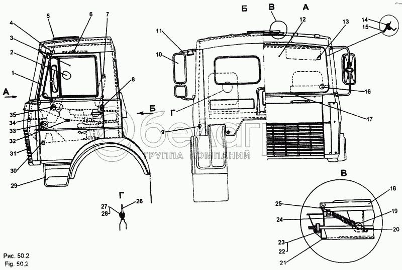 Каталог запасных частей к технике: МЗКТ-65158. Кабина
