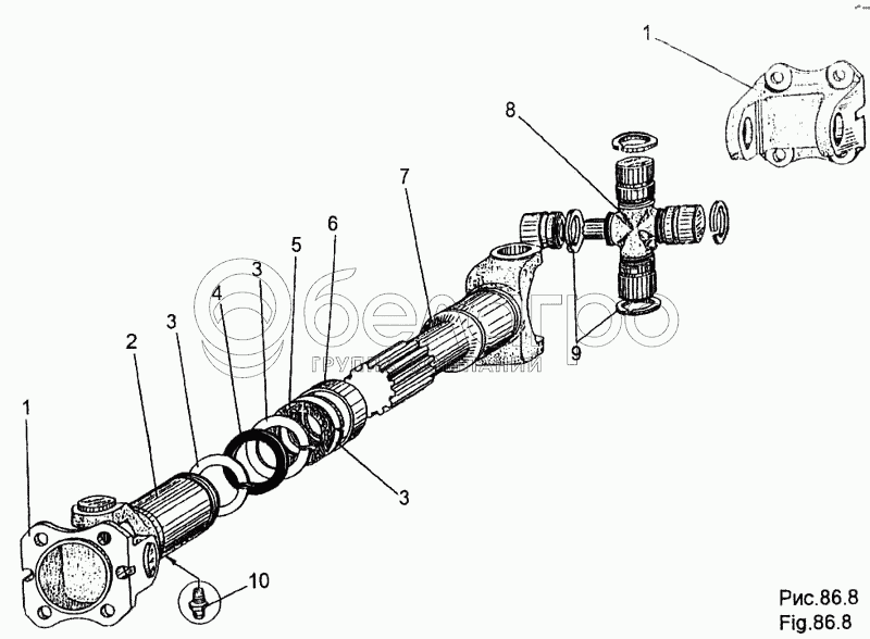 Каталог запасных частей к технике: МЗКТ-65158. Карданный вал привода насоса 79111-1760040