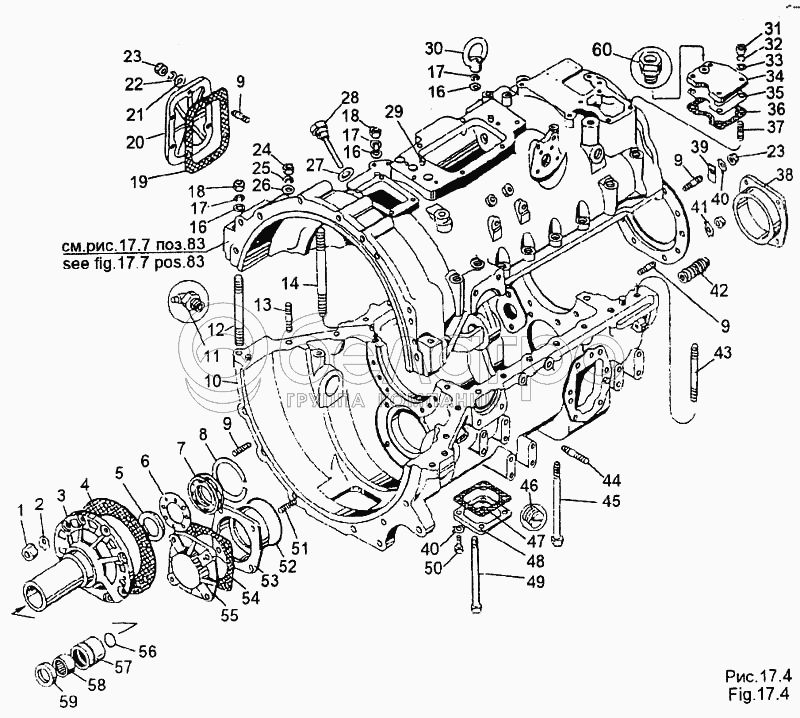 Каталог запасных частей к технике: МЗКТ-65158. Картерные детали коробки передач