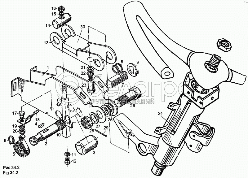 Каталог запасных частей к технике: МЗКТ-65158. Кронштейн с колонкой 64221-3403008