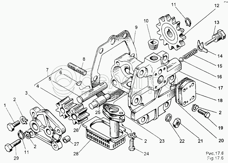Каталог запасных частей к технике: МЗКТ-65158. Масляный насос 202-1704010