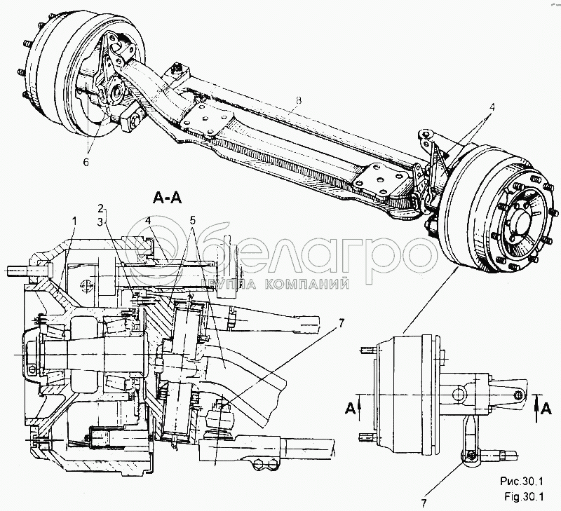 Каталог запасных частей к технике: МЗКТ-65158. Ось передняя