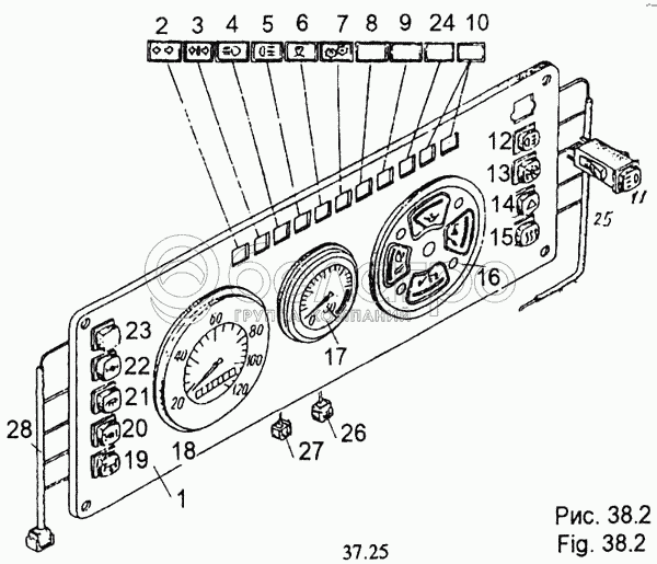 Каталог запасных частей к технике: МЗКТ-65158. Панель приборов