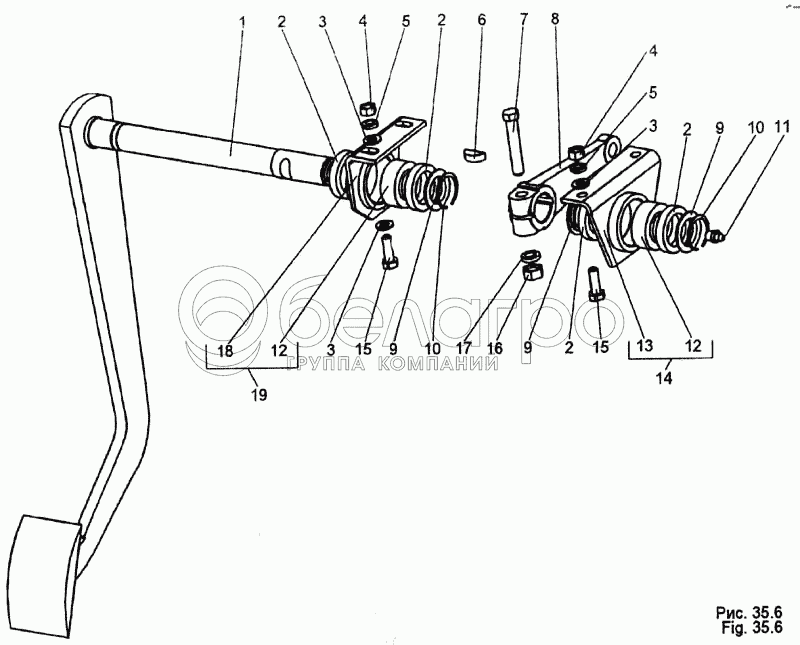 Каталог запасных частей к технике: МЗКТ-65158. Педаль тормоза 69237-3504100