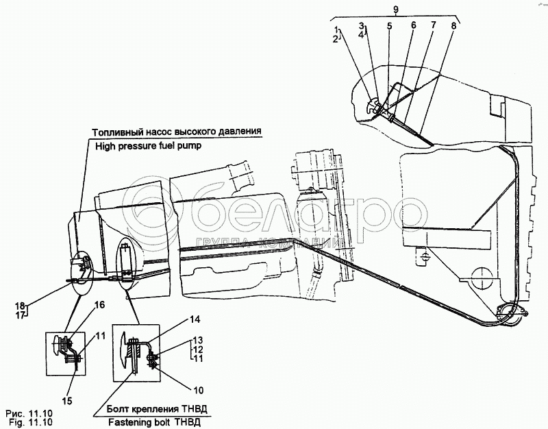 Каталог запасных частей к технике: МЗКТ-65158. Привод останова двигателя