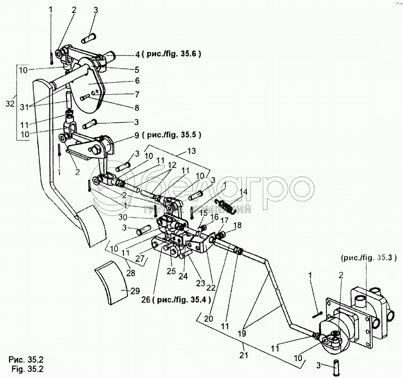Каталог запасных частей к технике: МЗКТ-65158. Привод тормозного крана