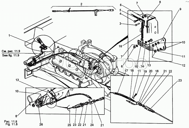 Каталог запасных частей к технике: МЗКТ-65158. Привод управления подачей топлива