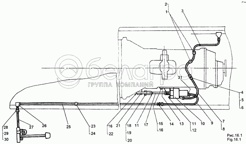 Каталог запасных частей к технике: МЗКТ-65158. Привод управления сцеплением