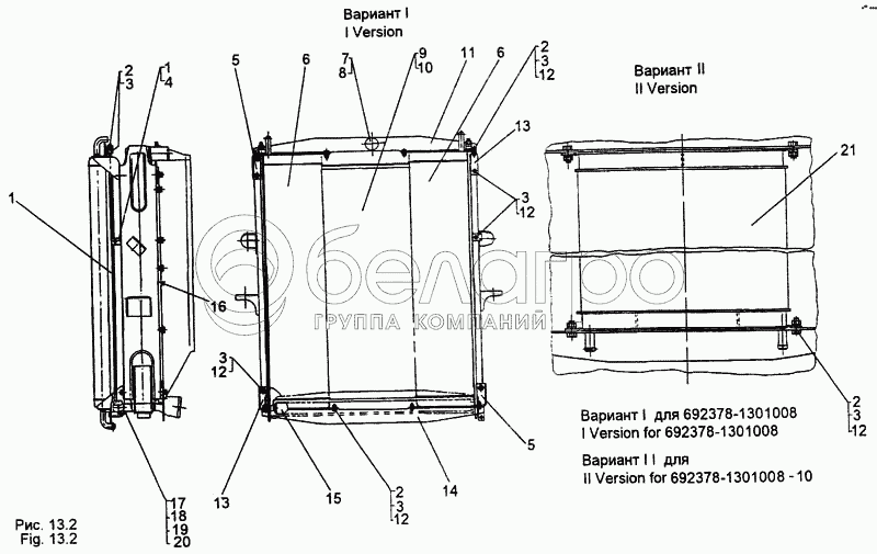 Каталог запасных частей к технике: МЗКТ-65158. Радиатор в состоянии установки