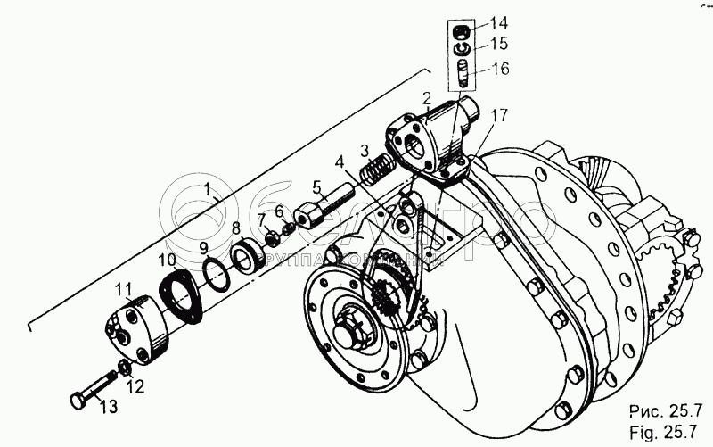 Каталог запасных частей к технике: МЗКТ-65158. Редуктор среднего моста. Механизм блокировки