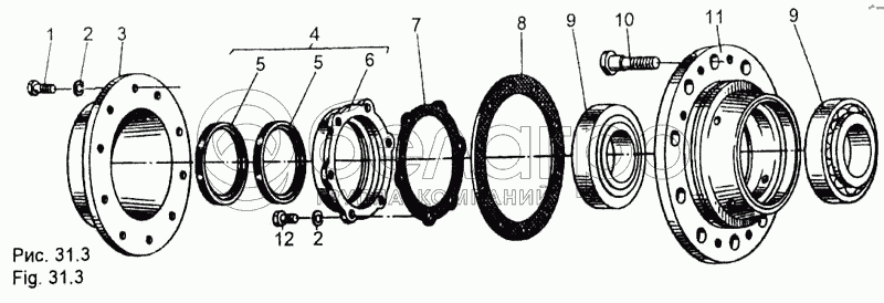 Каталог запасных частей к технике: МЗКТ-65158. Ступица задняя