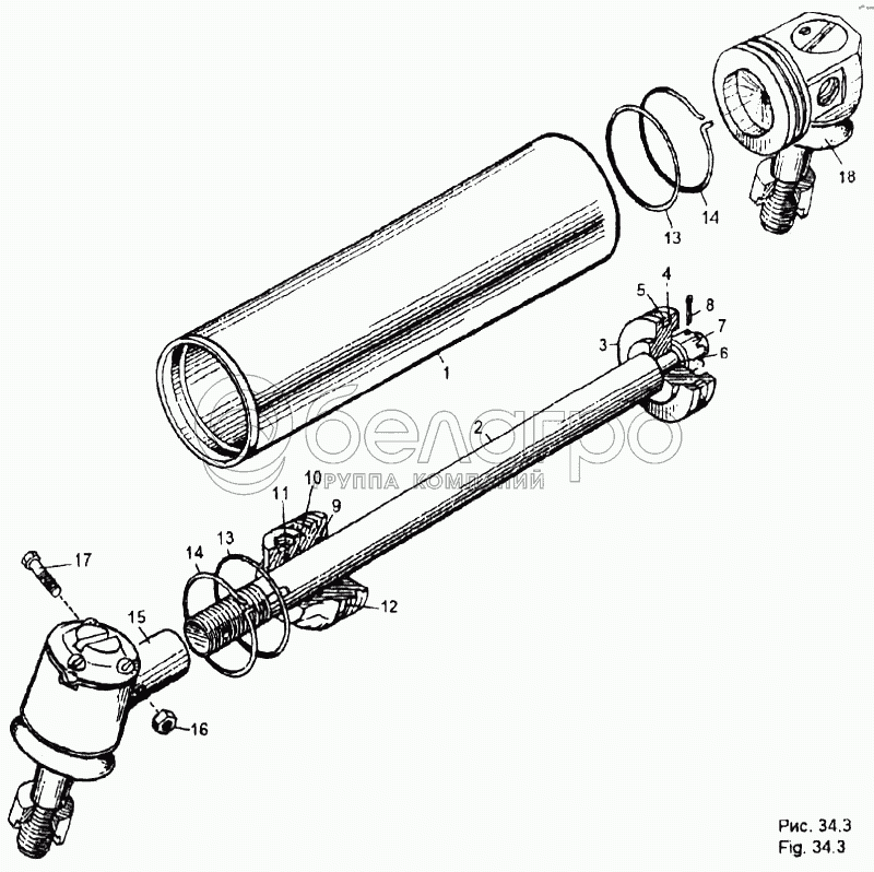 Каталог запасных частей к технике: МЗКТ-65158. Цилиндр 69237-3405005-11