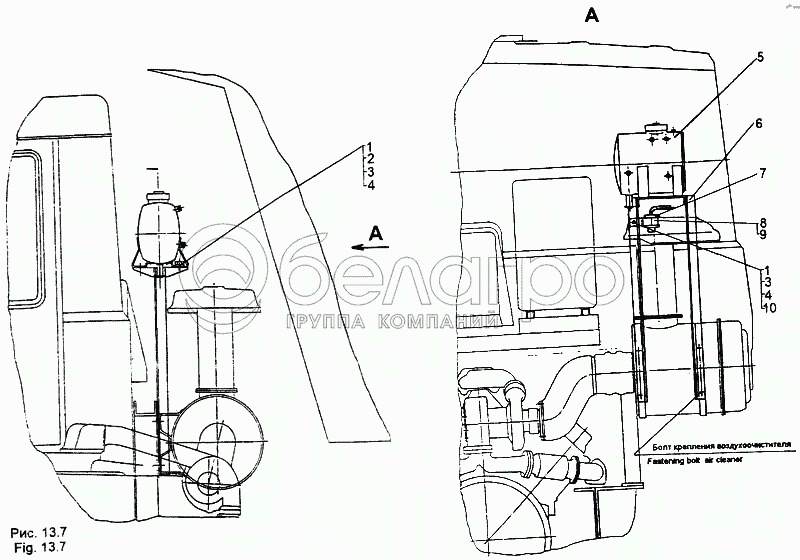 Каталог запасных частей к технике: МЗКТ-65158. Установка бачка расширительного, клапана редукционного
