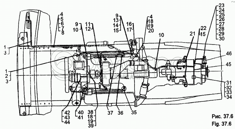 Каталог запасных частей к технике: МЗКТ-65158. Установка электрооборудования двигателя