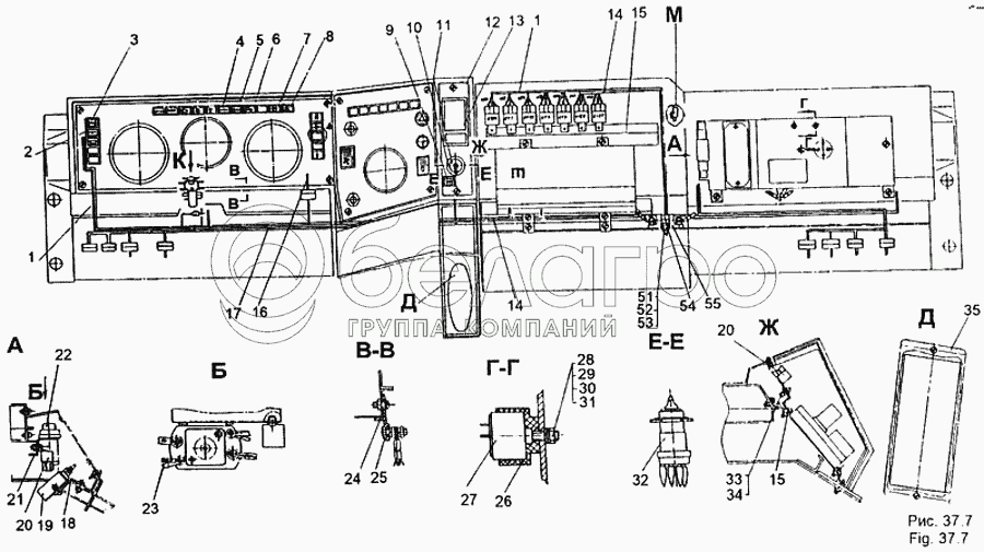 Каталог запасных частей к технике: МЗКТ-65158. Установка электрооборудования в кабине