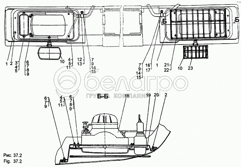Каталог запасных частей к технике: МЗКТ-65158. Установка головного освещения