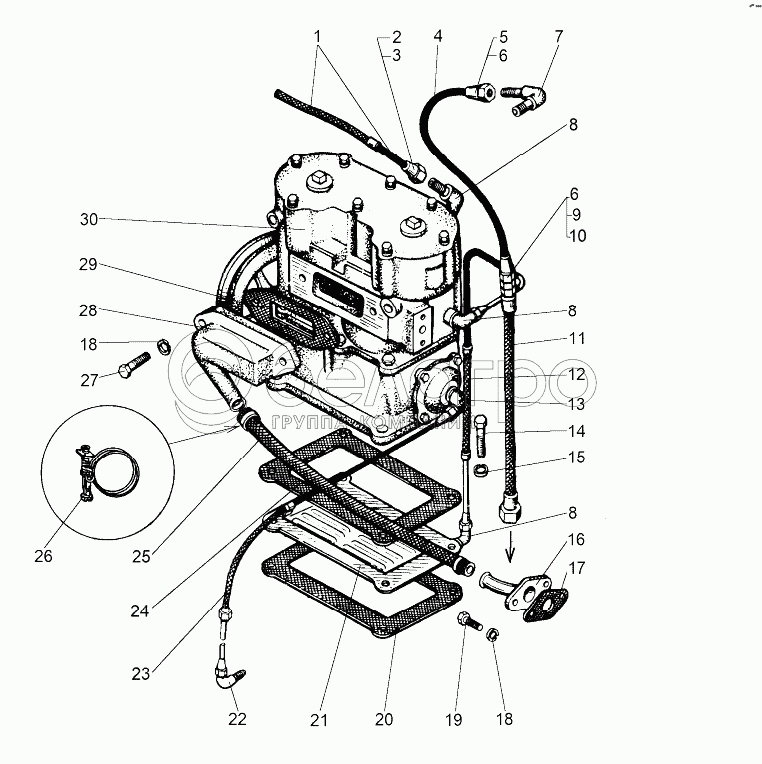 Каталог запасных частей к технике: МЗКТ-65158. Установка компрессора