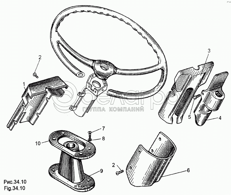Каталог запасных частей к технике: МЗКТ-65158. Установка кожухов рулевой колонки