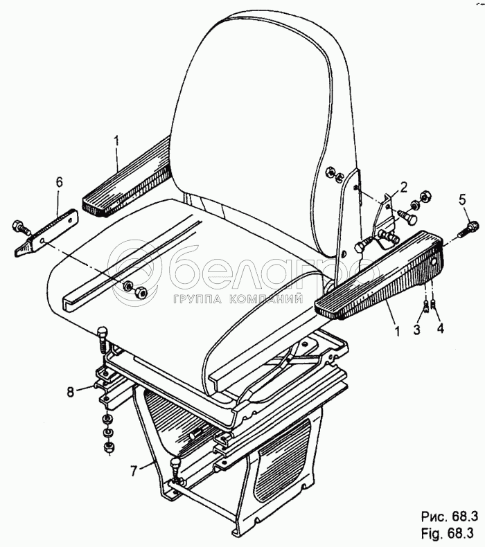 Каталог запасных частей к технике: МЗКТ-65158. Установка переднего сиденья и поручней