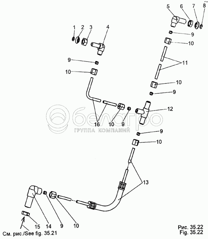 Каталог запасных частей к технике: МЗКТ-65158. Установка трубопроводов моторного тормоза