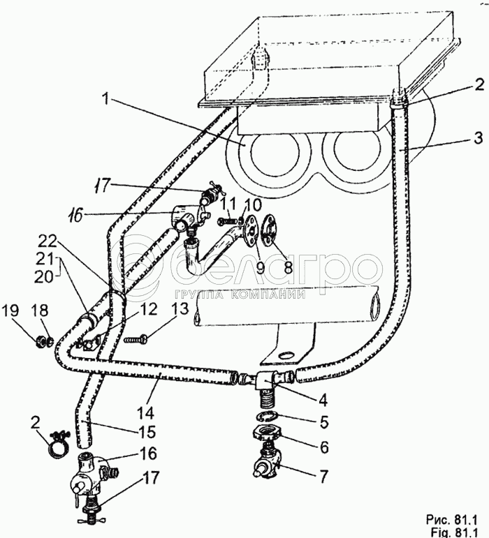 Каталог запасных частей к технике: МЗКТ-65158. Установка трубопроводов отопителя