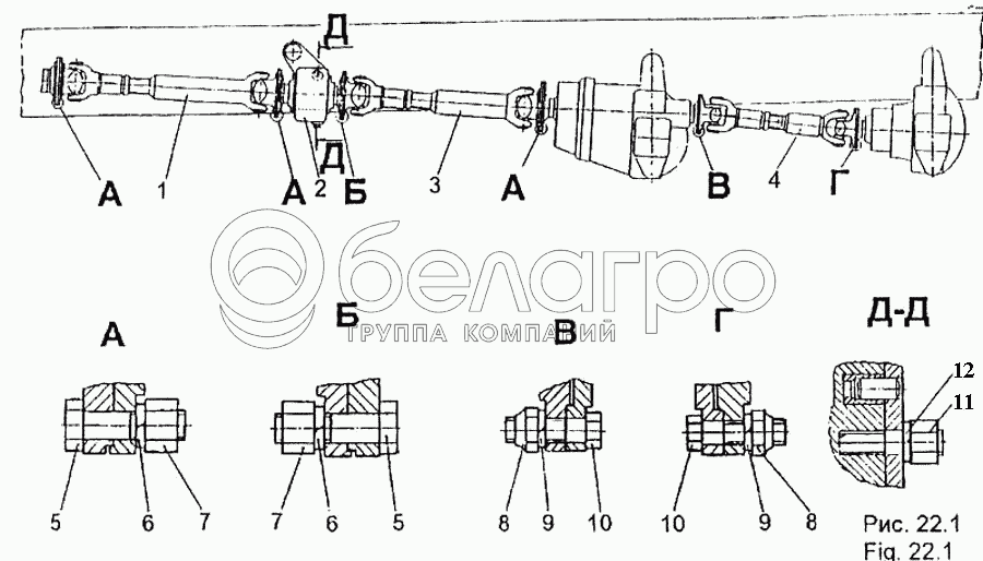 Каталог запасных частей к технике: МЗКТ-65158. Установка валов карданных
