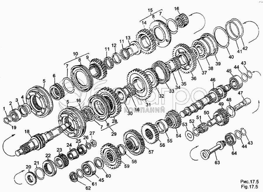 Каталог запасных частей к технике: МЗКТ-65158. Валы и шестерни коробки передач