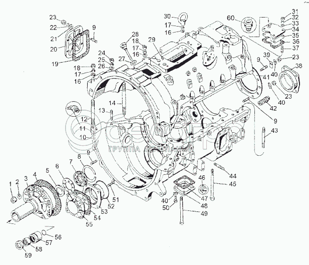 Каталог запасных частей к технике: МЗКТ-652511. Картерные детали коробки передач