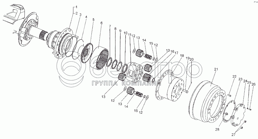 Каталог запасных частей к технике: МЗКТ-652511. Колесная передача заднего и среднего мостов