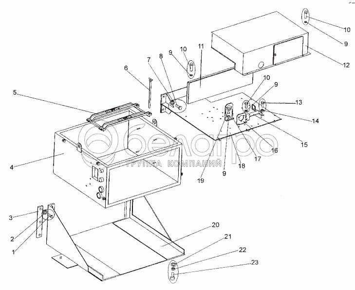 Каталог запасных частей к технике: МЗКТ-652511. Крепление контейнера аккумуляторных батарей