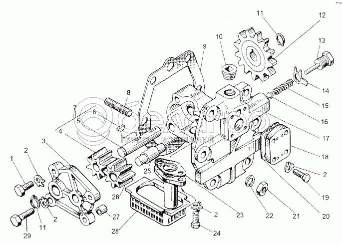 Каталог запасных частей к технике: МЗКТ-652511. Масляный насос 202-1704010