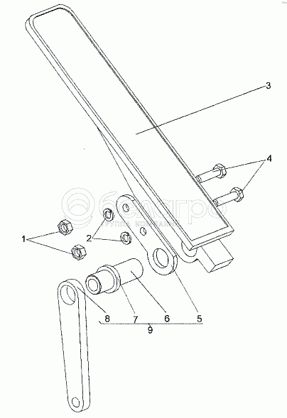 Каталог запасных частей к технике: МЗКТ-652511. Педаль с втулкой и рычагом 74133-1108006