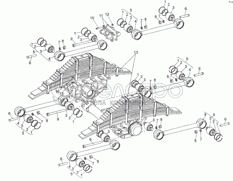Каталог запасных частей к технике: МЗКТ-652511. Подвеска задняя 6525-2910010