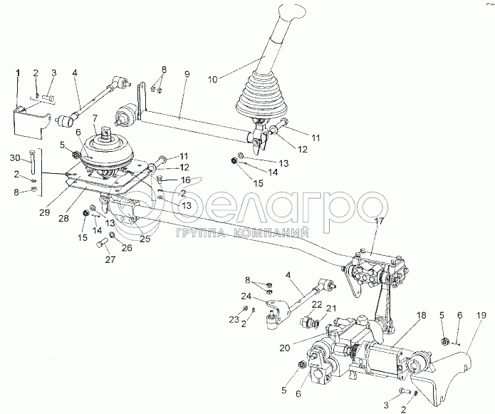 Каталог запасных частей к технике: МЗКТ-652511. Привод управления механизмом переключения передач
