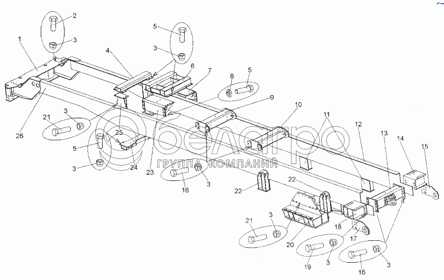 Каталог запасных частей к технике: МЗКТ-652511. Рама 652511-2800012