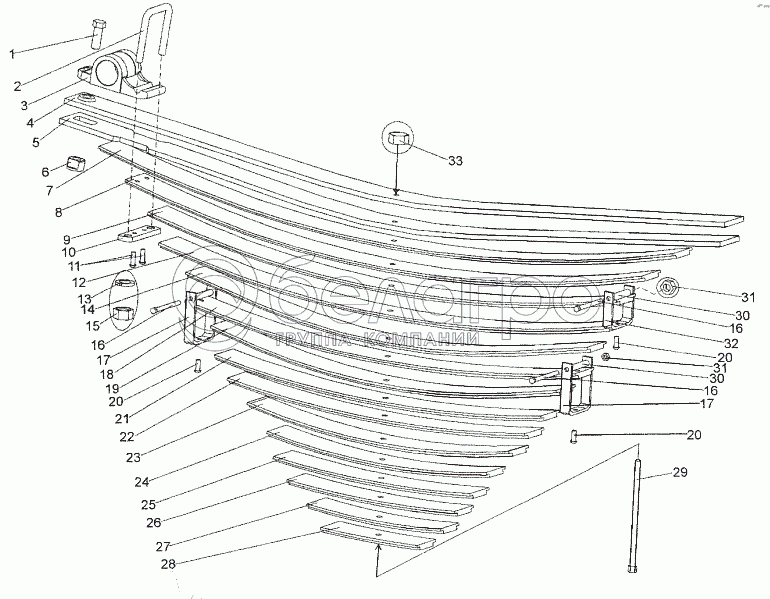Каталог запасных частей к технике: МЗКТ-652511. Рессора 8007-2912012
