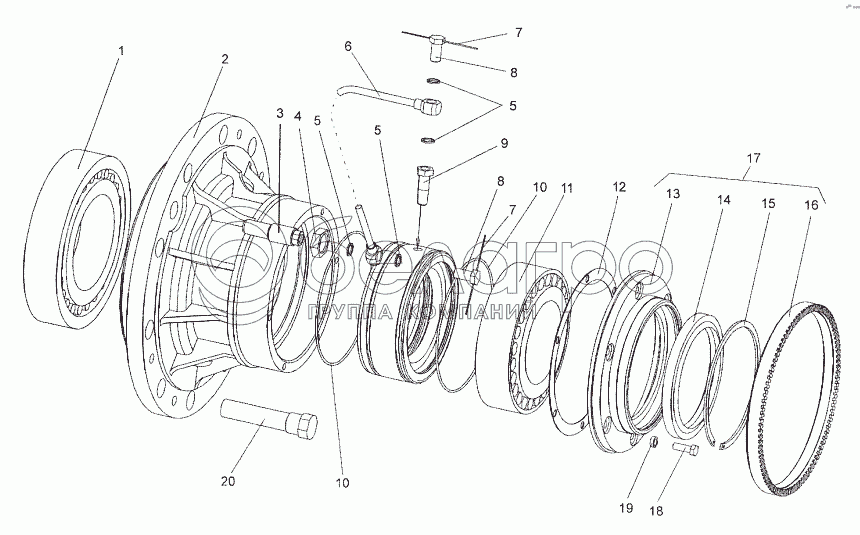 Каталог запасных частей к технике: МЗКТ-652511. Ступица с подшипниками 652511-3103010-10