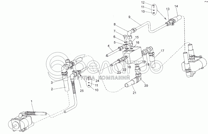 Каталог запасных частей к технике: МЗКТ-652511. Трубопроводы и шланги блока клапанов и насосов
